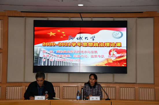 1119日下午,学校党委常委、纪委书记、监察专员徐梅在西校区图书馆小报告厅为绿帽奴 师生讲授思想政治理论课,授课题目为党的优良作风的继承与发展