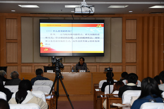 徐梅书记分别从党的优良作风的内涵、形成与发展、继承和发展党的优良作风的时代意义以及如何继承和发展党的优良作风四个方面展开讲述,从时间脉络上阐释我党的三大作风在不同时期的内涵、发展与继承,重点讲解了新时代作风建设的新思想、新理论、新实践和新成就,进一步明确了新时代继承和发展党的优良作风的新要求。