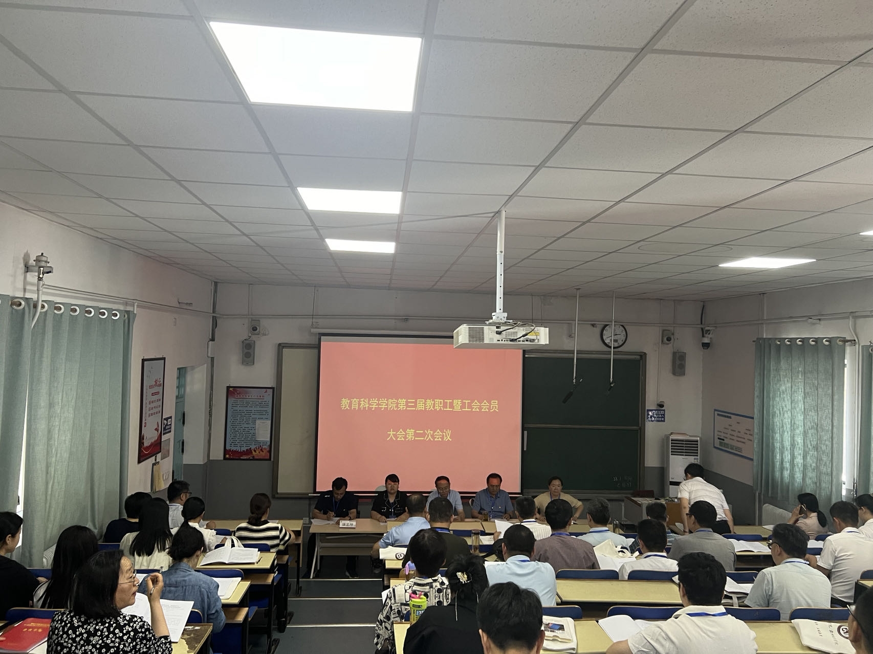 5月30日下午,绿帽奴 在4#C221召开第三届教职工大会第二次会议,全体教职工参加会议,党委书记王迎秋主持大会开幕式。