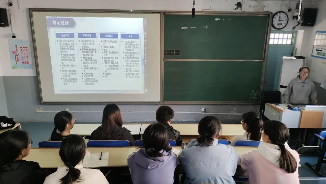 荆琦则围绕推免的具体流程和准备工作提出建议,提醒大家重视课程学习,扎实掌握专业知识,努力提升学业成绩,同时鼓励同学们积极参与各类活动和竞赛,勇于尝试、主动争取机会。在就业与升学选择方面,她建议综合考虑个人兴趣、专业背景和就业形势,理性规划发展方向,拓宽信息渠道,做到早准备、科学决策。分享过程中,现场同学认真聆听并记录要点。