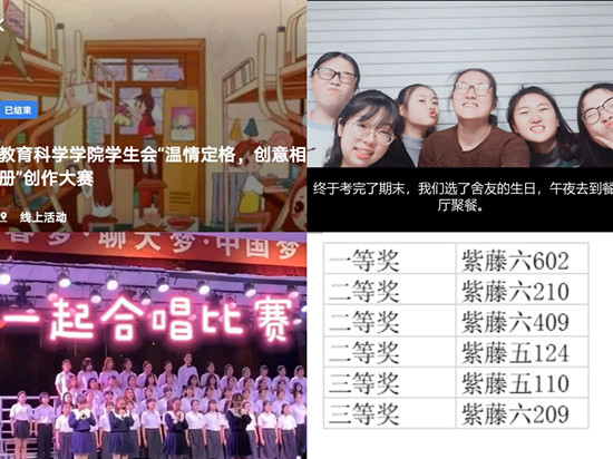 活动开始前,活动负责人联系各班负责人进行活动通知,同时对相关负责人进行合理地工作分配,以保证活动的正常进行。参赛者进群后,负责人进行详细地讲解了比赛规则及注意事项,参赛者按时将作品上传至活动群。在整个评比过程中采用视频共享、线上讲解的方式,各个寝室风格各异,同学们的视频设计的各具特色,有的通过一张张宿舍全体安静学习的照片凸显了宿舍浓厚的文学气息;有的将在校时出去游玩、聚餐的照片做成合集,同学们脸上洋溢着笑脸,展现了室友的情谊与青春飞扬的主题;还有的别出心裁,将室友们可爱的日常制作成动态相册,充满生活气息的视频制作让观看的同学们也想起了在宿舍的愉快生活。参赛的各个宿舍表现积极,充满创意的相册合集视频、同学们精彩的解说让评委们连连称赞。在评委公正地评分后,紫藤六602宿舍获得一等奖,紫藤六210、409以及紫藤五124宿舍获得二等奖,紫藤五110和紫藤六209宿舍获得三等奖。