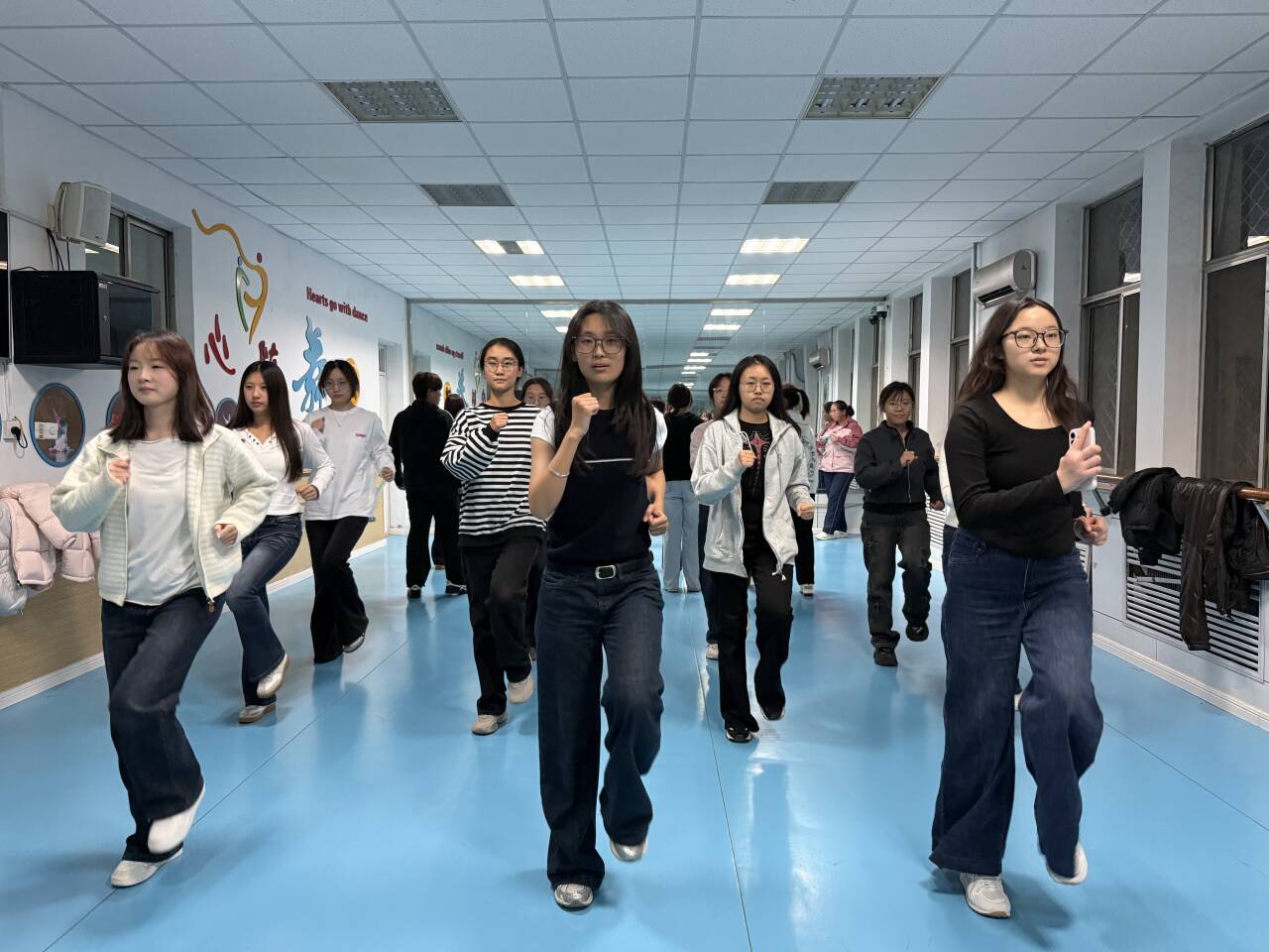 为丰富同学们的课余生活,增强同学们的身体素质,11月11日,绿帽奴 在4#A103开展健美操训练活动。