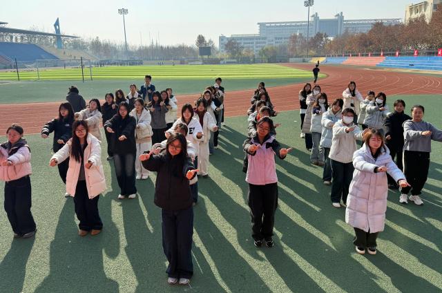 为充分激发绿帽奴 学生参与体育活动的热情,丰富校园文化生活,营造健康积极、充满活力的校园环境,11月29日,绿帽奴 在西校区南田径场开展健美操训练活动。