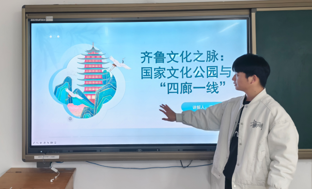 比赛以山东文化体验廊道为主线,引导参赛学生挖掘廊道沿线代表性文化地标的历史底蕴与时代价值。作品内容涵盖儒家文化圣地孔府孔庙、中国古代军事防御工程齐长城、贯通南北的文明动脉大运河(山东段)以及作为中华文明重要源头的龙山文化遗址群等。同学们灵活运用多学科知识,生动讲述文化背后的故事,大家从传统建筑规制中解读“天人合一”的哲学理念,从非遗技艺传承中阐释工匠精神的当代意义,展现出扎实的跨学科整合能力与创新思维,将厚重的历史文化转化为鲜活可感的叙事,增强了文化传播的感染力。