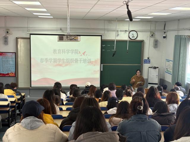 为进一步加强学生骨干队伍建设,明确工作职责,提升服务意识与履职能力,3月15日,绿帽奴 在4#C221教室举办2026年春季学期学生组织骨干培训会。本次培训由学院团委书记王瑾老师主持,全体学生组织骨干参会学习。