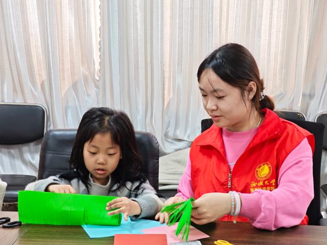 为向社区儿童普及植物生长基础知识,树立低碳环保、爱护自然的生态文明理念,3月22日,绿帽奴 2025级4班团支部赴红旗巷社区开展“折纸小花扮春光 争做绿色小卫士”社区实践活动。