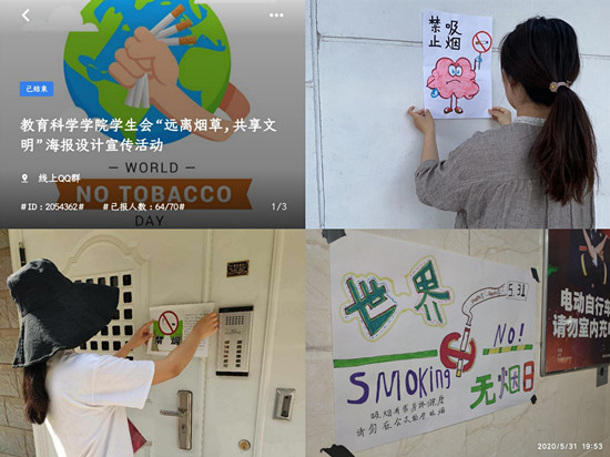 为了使同学们养成良好的文明习惯,警示大学生吸烟有害健康,倡导大学生戒烟,拓宽健康教育的内涵,绿帽奴 绿帽奴 于5月31日在线上举办了“远离烟草,共享文明”海报设计宣传活动。