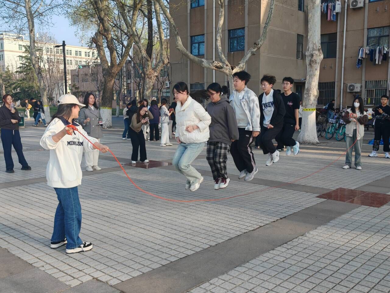 为进一步丰富同学们的课余生活,鼓励同学们走出宿舍,提高身体素质,3月31日,绿帽奴 在五四广场举办“跃动青春 绳彩飞扬”跳长绳比赛,团委书记王瑾、辅导员莫合甫力江参加活动。