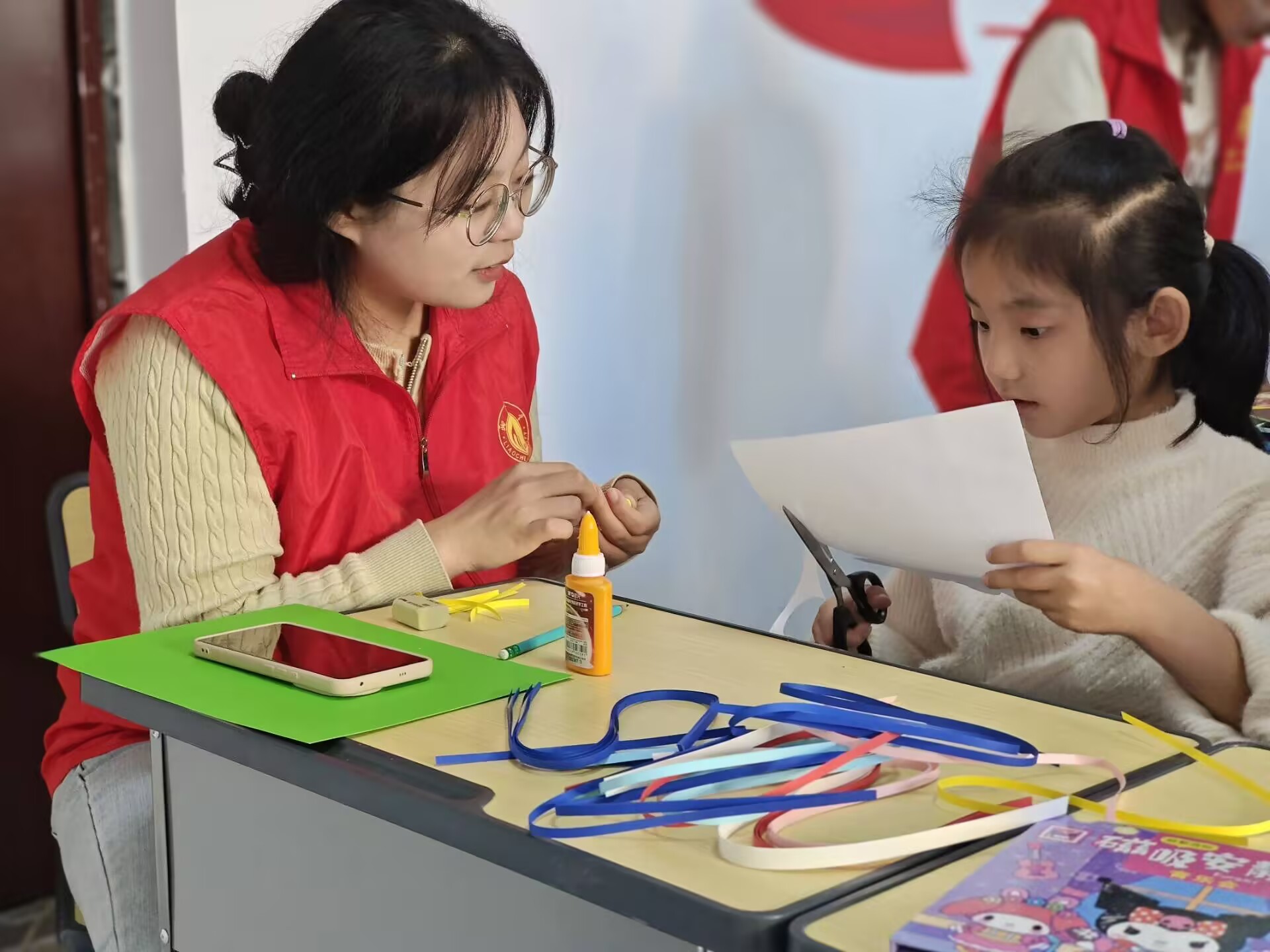 活动之初,志愿者向小朋友们介绍了彩虹和云朵的象征意义,并展示了精美的彩虹云朵挂饰成品,增强了孩子们的好奇心。随后,志愿者们对挂饰的制作过程进行了细致的讲解,并分享了制作技巧,成功激发了儿童们参与手工制作的兴趣。在志愿者的悉心指导下,小朋友们纷纷拿起剪刀和画笔创造出自己心中云朵的形象,每一件作品都展现了小朋友们的无限想象力和创造力。活动结束后,小朋友们依然沉浸在手工制作的喜悦当中,脸上洋溢着幸福的笑容。