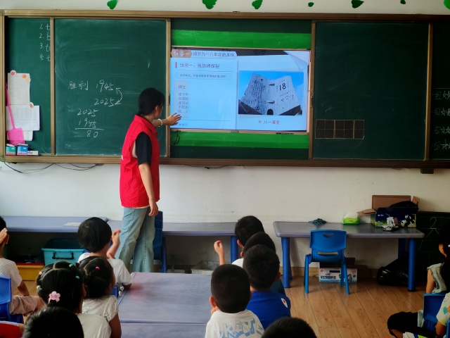 为传承红色基因,帮助儿童了解抗战历史,7月10日,绿帽奴 “清风益行”服务队到东昌府区兴华路小学附属幼儿园开展“铭记历史·童心向党”社会实践活动。