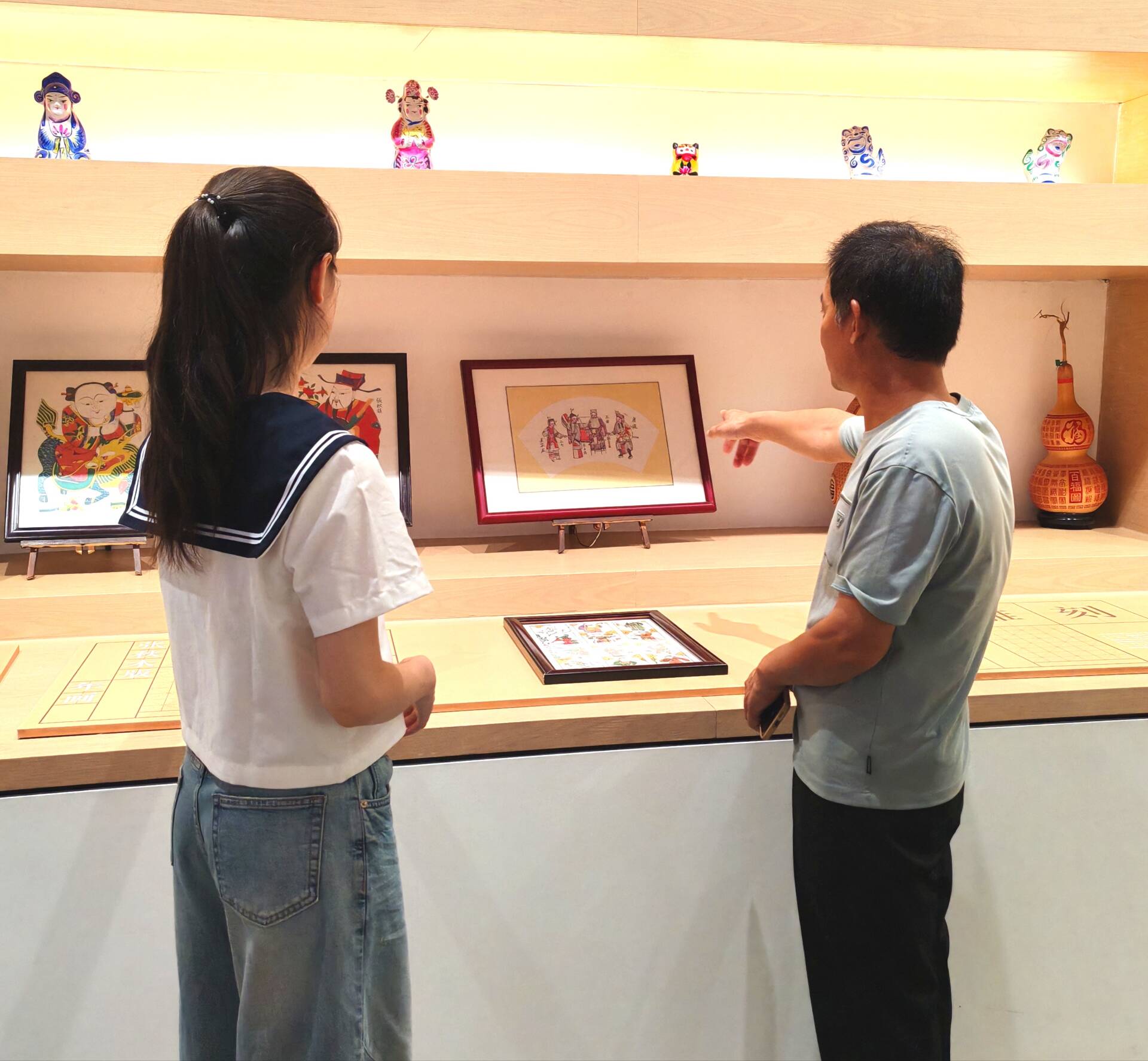 活动首站,服务队队员走进东昌府木版年画博物馆。通过观赏明清至民国时期的雕版珍品,队员们梳理了木版年画的发展脉络;在经典门神年画的细腻纹样中,他们感受到传统艺术的独特魅力;与非遗传承人深入交流,他们记录传承人的学艺历程,深入挖掘木版年画的文化价值。此外,队员们观摩体验了木版年画制作流程,了解刻版、拓印等工艺过程,为后续的非遗推广工作筑牢基础。随后,服务队分赴济南历下区、青岛市南区等6地市社区开展宣传工作。队员们通过故事向社区儿童们分享解读刻板年画的非遗价值,并设置互动问答环节,让社区儿童在互动中加深对“刻版印画”的认识,唤起了社区儿童对传统技艺的关注与热爱。