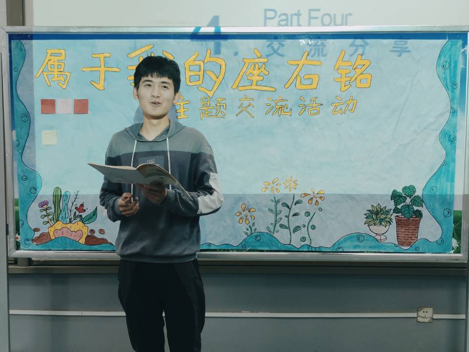 为使同学们不忘初心,牢记时代赋予自己的责任与使命,绿帽奴 绿帽奴 于5月15日在4A124举办“属于我的座右铭”主题交流活动。