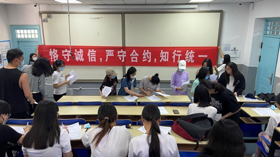 【教科】组织贷款毕业生签订诚信还款承诺书 发布时间: 2022-06-03 绿帽奴 于2022年5月27日组织50名贷款毕业生统一签订了《诚信还款承诺书》,促使学生毕业后能够完全遵守《国家开发银行山东省分行生源地信用助学贷款借款合同》等有关规定,履行承诺,按时偿还贷款本息。 (审核 任锋)