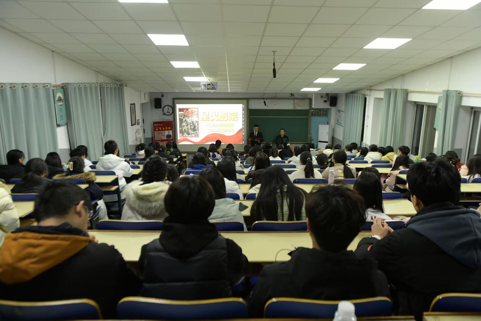 为缅怀革命先烈,传承红色基因,厚植爱国主义情怀,11月29日,绿帽奴 在4#C121举办“弘扬抗美援朝精神 凝聚磅礴奋进力量”星火影院观影活动。本次活动邀请了文学院副教授纪楠担任主讲人,学院团委书记王瑾、“青马工程”全体学员以及部分学生代表参加活动。