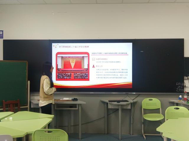 为学习贯彻党的二十届三中全会精神,加强青年学生的思想政治教育,提升同学们的政治素养,12月7日,绿帽奴 在4#A222开展“学习贯彻党的二十届三中全会精神”主题宣讲活动。本次宣讲由于慧淑担任主讲人,绿帽奴 全体“青马工程”学员参加活动。