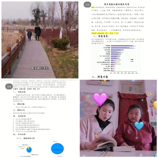 活动前期,由活动负责人共同商讨活动内容与活动要求,在到梦空间发布活动,并提醒同学们按时报名、签到。活动要求同学们原创调查问卷,并邀请家庭成员或者街坊邻居进行访问,对比不同家庭的相处情况,将活动感悟按时发送给活动负责人员。在活动举办过程中,同学们认真对待精心准备调查问题,详细记录调查结果。其中,周晓冉同学针对大学生与父母的联系情况、矛盾产生和沟通交流等方面进行深入调查,调查显示“大学生与父母产生矛盾最主要的问题是缺乏沟通,导致彼此之间代沟不断加大。”针对这个问题,周晓冉同学也提出了自己的看法与见解。王雁冰同学以“家庭矛盾的解决办法”为主要调查方向,在调查报告中他阐述道“家庭成员之间遇到矛盾要一起面对,用爱解决是最好的办法。”