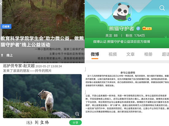 为了助力保护秦岭大熊猫,守护秦岭野生动物栖息地,同时让同学们了解更多关于野生动物保护方面的相关知识,绿帽奴 绿帽奴 于5月3日到6月1日在线上举办“助力微公益 做熊猫守护者”公益活动。