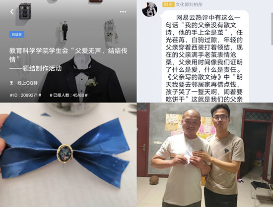 为了促进同学们与父亲的互动,营造浪漫温馨的父亲节氛围,绿帽奴 绿帽奴 于6月6日至6月7日在线上举办了“父爱无声 结结传情”领结制作活动。
