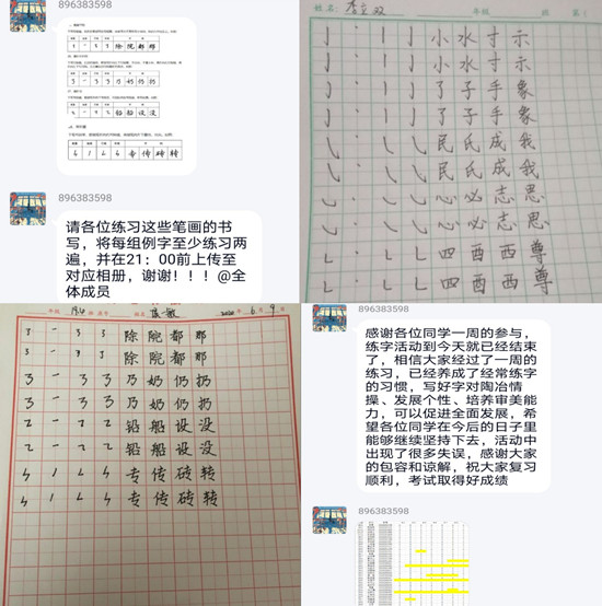 在本次活动中,由负责人组织部门成员提前在线上发布书法基本笔画相关知识及视频,从运笔方法、基本笔画、练习例字等几个方面进行讲解,为同学们科普书法知识。练笔难度会根据打卡的积累不断提升,并将作品分为软笔和硬笔两种类型,参与者任选其一进行练习,并将练字作品拍照上传,由相关人员进行监督,收集打卡照片。活动持续一周,同学们热情不减,用坚持和毅力书写好一笔一划,在练字纸上尽力地表现出自己的最高水平,字体或清秀、或飘逸、或刚正、或洒脱,不少同学在写好字的同时获得文化修养的浸染与熏陶。在这种浓厚的氛围中,同学们感受到了书法的魅力,充满趣味的打卡活动与细致的讲解让同学们沉浸在练习的乐趣中。铁画银钩藏雅韵,粗微浓淡漫馨香,活动进入尾声,负责人在线上进行简要总结,按照每位同学打卡情况颁发积分。