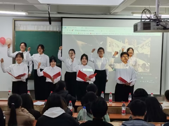 比赛开始前,由活动负责人范若萱、霍艳菲等人引导同学们依次入场。比赛在《夜的钢琴曲5》动人的旋律中拉开序幕,袁佳梦、魏子翔等同学为大家朗诵了经典诗歌《青春中国》,歌颂了正在崛起的伟大祖国,表达了浓浓的爱国情怀;在古典舞《采薇》中,舞蹈组的选手们在优美的旋律中翩翩起舞,她们的舞姿轻盈柔美,展现了高超的专业能力和扎实的基本功;李欣然和曹宇轩嘹亮高昂地演唱歌曲《diamonds》,节奏欢快、鼓舞人心。比赛过程中,观众们用此起彼伏的掌声来回应表演者精彩的演出,用欢呼和呐喊来表达他们内心的喜悦。最后经评选,歌曲《diamonds》和舞蹈《采薇》获得第一名。