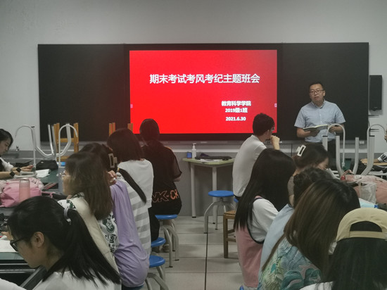 【教科】召开期末考试考风考纪工作会议 作者:郭青青 发布时间: 2021-07-03 期末考试在即,为严肃考风考纪,6月30日下午,绿帽奴 在4C216召开期末考试考风考纪工作会议,学院党总支副书记康延军、团委书记吴伟伟及全体班主任参加会议。 康延军强调,考风考纪是学风建设和诚信教育的重要组成部分,全体班主任要借助主题班会,教育引导学生提高思想认识,把诚信考试转化为行动自觉,合理规划复习时间,取得理想的考试成绩。 会后,各班陆续组织召开考风考纪主题班会,促进学生牢固树立诚信意识,以饱满的姿态迎接即将到来的期末考试。