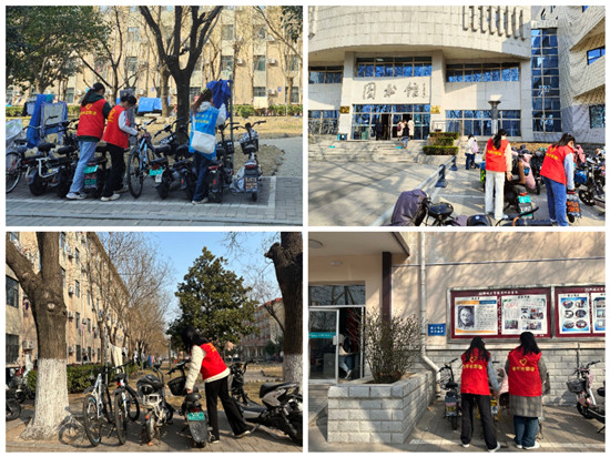 活动伊始,负责人将志愿者们分为五组,由组长带领组员按时到达所分配的任务区,随后,志愿者们将摆放不整齐、不在停车区域的车辆,按照“规范停放,摆放有序,朝向一致”的原则进行整理摆放,同时向过往骑车的学生们积极宣传文明骑行、有序停放的重要意义,引导骑行者将自行车和电动车摆放到白线内的停放区域,对停车不规范的行为进行及时劝说制止。摆放时志愿者们还注意摆放后的车辆位置,避免了车主找不到自己的自行车或者电动车的情况发生,他们忙碌的身影不断穿梭在各个停车地点。活动结束后,许多同学表示,今后会规范停车,争做文明践行者,让“文明摆放车辆,共建文明校园”的口号喊得更响、传得更远。