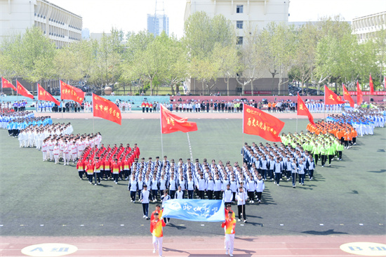 比赛当天,在前面10组学院展示完成之后,绿帽奴 方队在领操员徐浩然、王俊玲的带领下迈着整齐步伐喊着响亮的口号进入比赛场区。伴随着口令响起,参赛队员们面带笑容,精神饱满,挥臂、踢腿、下蹲动作规范、整齐划一,举手投足间充满自信与活力,展现了体操的动感与优美。