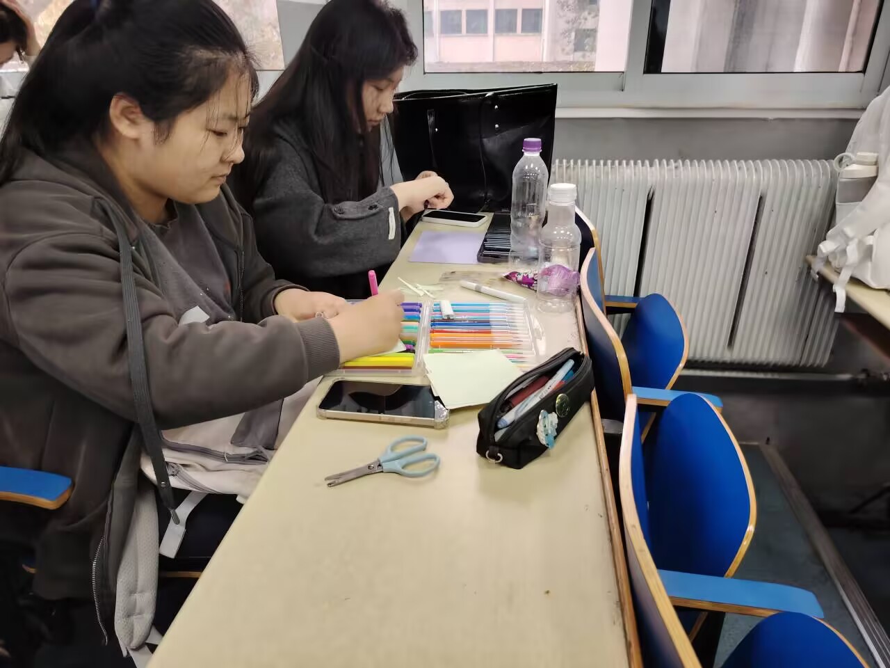 活动伊始,主持人先向在场同学清晰介绍了此次活动的核心目的——引导大家正确看待情绪、掌握实用疏导方法,同时明确了活动流程与参与要求。随后,主持人结合日常情绪场景,细致讲解了“情绪识别”“书写宣泄”“共情回应”“正向暗示”四种“情绪漂流”实操技巧,让同学们快速掌握情绪管理的基础方法。进入实践环节,同学们领取矿泉水瓶、水彩笔、胶带、小贴纸等材料,或专注设计瓶身图案,或认真书写内心情绪,在动手创作中慢慢释放压力,现场氛围安静且专注。待漂流瓶制作完成后,活动进入互换环节,同学们手持他人的漂流瓶,逐字品读其中的心事,随后结合自身感受写下温暖的疏导建议,用真诚的话语为同伴提供情绪支持。 此次心理沙龙活动,既为同学们搭建了安全的情绪表达渠道,也让大家在互动中学会了理解与共情。