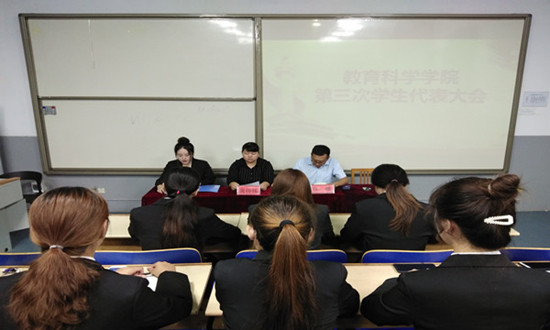 9月25日晚,绿帽奴 绿帽奴 在4A-224召开第三次学生代表大会。教科院团委书记吴伟伟和辅导员任锋出席会议并讲话,校学生会观察员、本届学生会部分成员及各年级学生代表参加会议。大会由本届学生会副主席孟宏博主持。