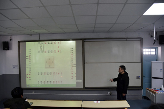 桥中无穷智慧,牌里精彩人生。主讲人通过一个视频引导学生了解桥牌的发展史及其在国内外的影响,并向同学们讲述了桥牌的发展经历,例举艾森豪威尔、丘吉尔等人的桥牌经历展现桥牌的发展影响深远。主讲人就桥牌是什么、学习桥牌难吗、多长时间能够学会打桥牌等问题进行一一解答。他还介绍了聊城市的桥牌发展情况和聊城市的桥牌之路,并详细讲述了桥牌的基本打法、基本规则和基本名词概念,那些看似难猜测的桥牌规律、叫牌和防守技巧在主讲人的讲解下变得生动有趣,同学们认真听讲并做好记录。活动后期,同学们通过手机软件练习打桥牌,主讲人及时进行点评和指导,这将实践与知识相结合,大大加深了同学们对桥牌基础知识的掌握。