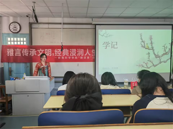 为增强同学们对《学记》的深刻了解,提升个人思想境界,引导同学们深刻学习领会其教育思想,与先贤对话,绿帽奴 于4月16日在4#A124举办“诵读国学经典 启迪智慧人生”朗读者活动。