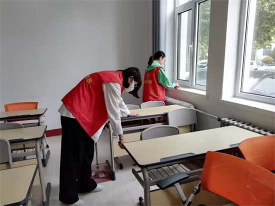 活动初期,负责人组织学生志愿者做好卫生用品的准备和分发工作,分组对教学楼一至三楼的教室、走廊等区域进行清扫和整理。活动中,同学们积极参与,团结协作,按要求分批前往各自负责的教室清扫地面、擦拭桌椅、整理教学用具。同学们以饱满的热情投入到教学楼的清扫之中,充分展现了教科学子不怕脏、不怕累的良好风貌。