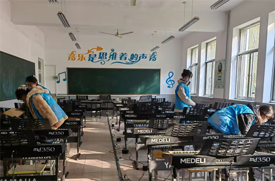 活动开始前,志愿者在指定地点准时集合,负责人对志愿者进行分组,并分发工具、分配任务。在活动过程中,同学们分工明确,团结协作,一组同学认真清扫教室地面、擦拭讲台桌面及黑板、清空桌内垃圾、规整桌椅;另一组同学摆放单车,整理公共区域的杂物,清理地面垃圾。同学们以饱满的热情投身活动,用实际行动弘扬了“奉献、友爱、互助、进步”的志愿服务精神,充分展现了青年学子不怕苦、不怕脏、不怕累的良好风貌。