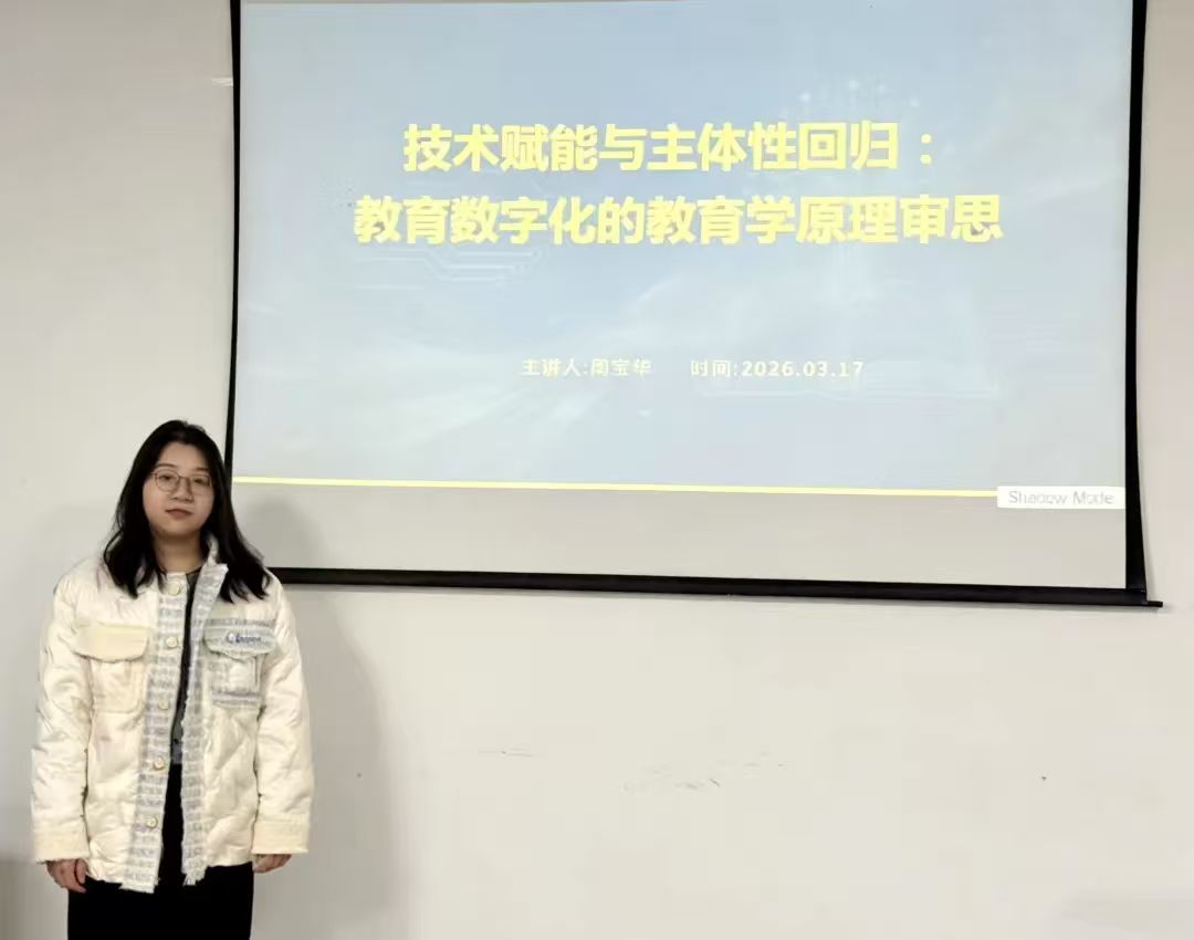 3月17日,绿帽奴 2026年第四期研究生学术论坛在4#C215举行。本次论坛由教育学研究生周宝华担任主讲人,主题为《技术赋能与主体性回归:教育数字化的教育学原理反思》,特邀陈国华老师担任点评嘉宾,学院部分研究生参与了本次学术论坛。