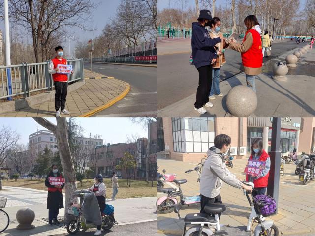 绷紧安全琴弦,奏响生命旋律。活动伊始,身着红色马甲的志愿者在学院集合,由活动负责人对志愿者进行活动培训。随后,志愿者前往西校区各个重要路口、关键节点进行志愿服务。活动过程中,志愿者们以文明劝导为主,手持“不载人 戴头盔” “骑电车、守交规”“安全头盔是个宝 驾乘车时要戴好”等文明标语,开展交通安全教育宣传,提醒往来的同学与老师要注意行驶安全,倡导大家遵守交规,文明出行。彩虹桥下、餐厅周边、星月广场等人流量大的区域到处有志愿者们忙碌的身影,不时有路过的老师和同学为他们伸手点赞,也纷纷表示要自觉遵守交通法规,做到文明骑车安全出行。