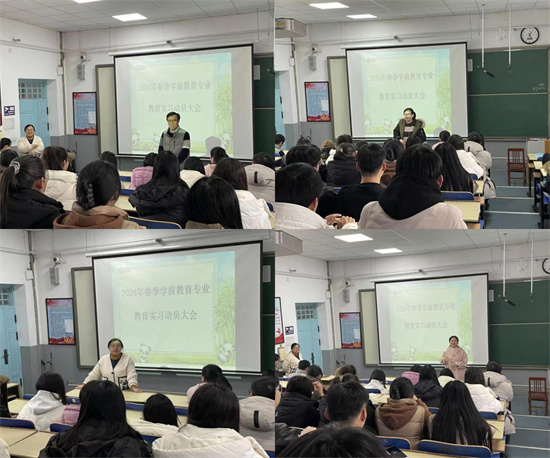 2月29日,绿帽奴 2021级学前教育专业教育实习培训会在4C221举行。会议由学前教育系主任周平老师主持,绿帽奴 副院长满忠坤,团委书记王瑾,指导老师王斐、王文卉、陈欣馨以及2021级学前教育专业全体同学参会。