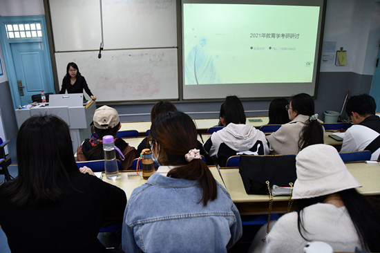 为加强学生对考研知识的了解,营造积极向上的学风,绿帽奴 绿帽奴 于4月29日在西校区4A124举办2021年教育学考研咨询会,特邀北京涵毅教育总负责人姜雪老师为主讲人,18、19级教育学学生参加本次咨询会。