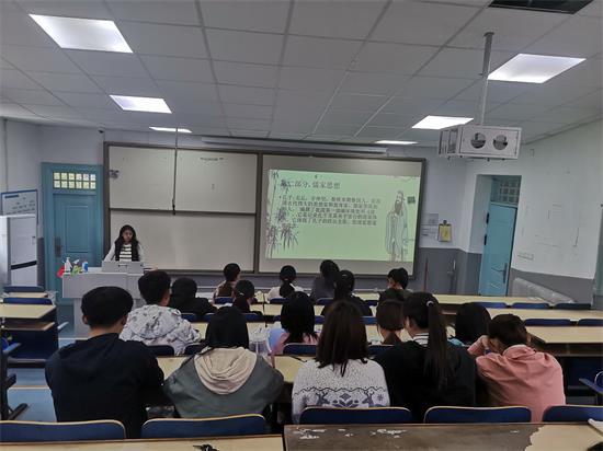 活动伊始,由张莹宣布比赛规则,而后选手按顺序讲解国学经典,选手们将讲解与PPT相结合,使历久弥新、底蕴深厚的国学经典变得浅显易懂。讲解中,参赛选手逻辑清晰,语言生动;听众们聚精会神、认真聆听。其中,王俊玲从爱情、亲情和友情三方面讲解《诗经》, 语言表达优美,意境悠长,得到听众们一致好评;王胜男以诗词三境界引出王国维的《人间词话》,讲解层层深入、简洁明了,言简意赅地表达出对于国学的自我理解。闭卷答题分为选择题和填空题,考卷呈在PPT上,参赛者对照其答题。参赛选手们或奋笔疾书、或埋头苦思,都尽己所能交出一份满意的答卷。经过激励角逐,结合国学讲解表现和考卷成绩,陈聪聪获得一等奖。
