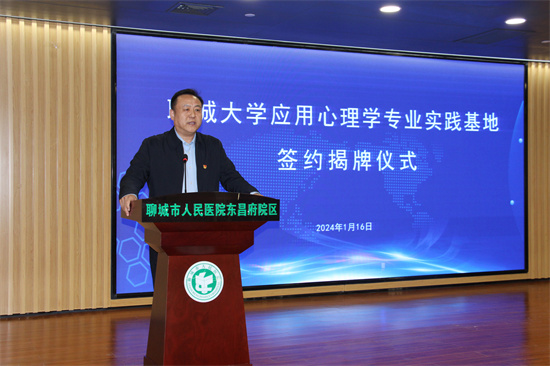 聊城市人民医院党委书记姜祥坤在讲话中表示应用心理学专业教育实践基地的建设不仅对学校学生培养工作具有重要意义,对于维护和增进辖区内群众身心健康、提升公众幸福感也具有积极影响。他相信,通过双方的共同努力,一定能实现合作互动、互利共赢,为国家经济社会发展做出更大贡献。
