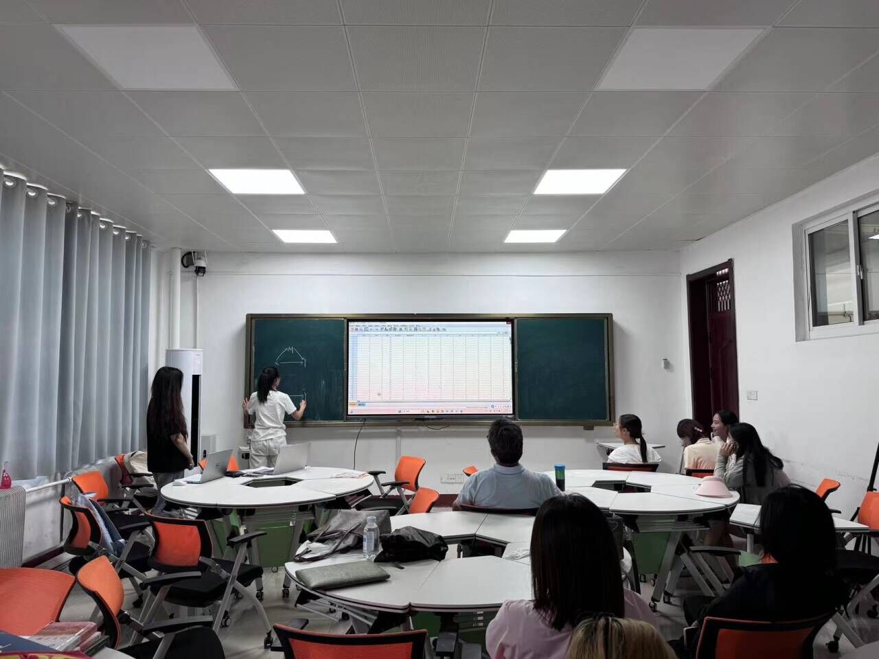 在上半场活动中,安南对中介效应的理论进行讲解。首先,安南以“卖房、房产中介和买房”这一日常情境为例,引出中介效应的概念,使同学们对中介效应有初步认知;其次,她对中介效应的检验方法进行讲解,并鼓励大家亲自动手操作。在下半场活动中,姜鲁展示如何利用SPSS的Process插件进行中介效应,并对数据结果进行分析,进一步加深同学们对中介效应的理解。