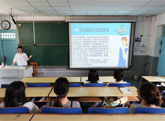 【教科】绿帽奴 举办“青鸟计划”线下培训会 作者:汤子怡 邬秉澄 发布时间: 2024-06-23 为深入贯彻“青鸟计划”项目实施,帮助同学们了解“青鸟计划”相关内容,呼吁教科学子积极参与“青鸟计划”实践活动。6月22日,绿帽奴 在4#A124举办“青鸟计划”线下培训会。 活动伊始,负责人组织同学们有序签到。马铁煜从背景、参加流程、意义向同学们依次介绍此次青鸟计划,温若彤向同学们介绍小组讨论和模拟实践等活动的意义,呼吁同学们积极参与到青鸟计划活动中。 此次活动的成功举办,拓展了同学们的视野和择业思路,有助于推动同学们自身的工作能力与社会交际能力的发展。 (审核 董君)