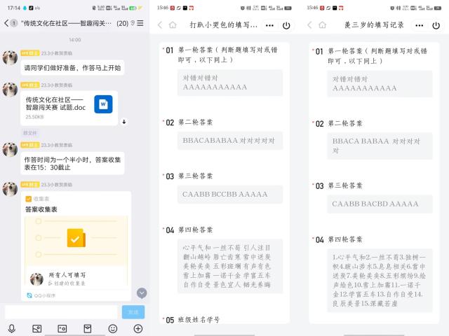 比赛共设立四个环节,涵盖了经典诗词、传统节日、成语理解、经典名著等多个方面,参赛人员从不同视角了解中华优秀传统文化。答题时,参赛选手沉浸在中华优秀传统文化中,争分夺秒、全神贯注地答题闯关,充分展现出参赛选手深厚的文化功底。最后,志愿者们对参与人员的评比结果进行汇总计算,吴晓霜获得一等奖,王晓雨获得二等奖,赵紫絮和楚亦帆获得三等奖。在此次比赛中,同学们被中华优秀传统文化深深吸引,坚定了同学弘扬和学习中华优秀传统文化的决心。