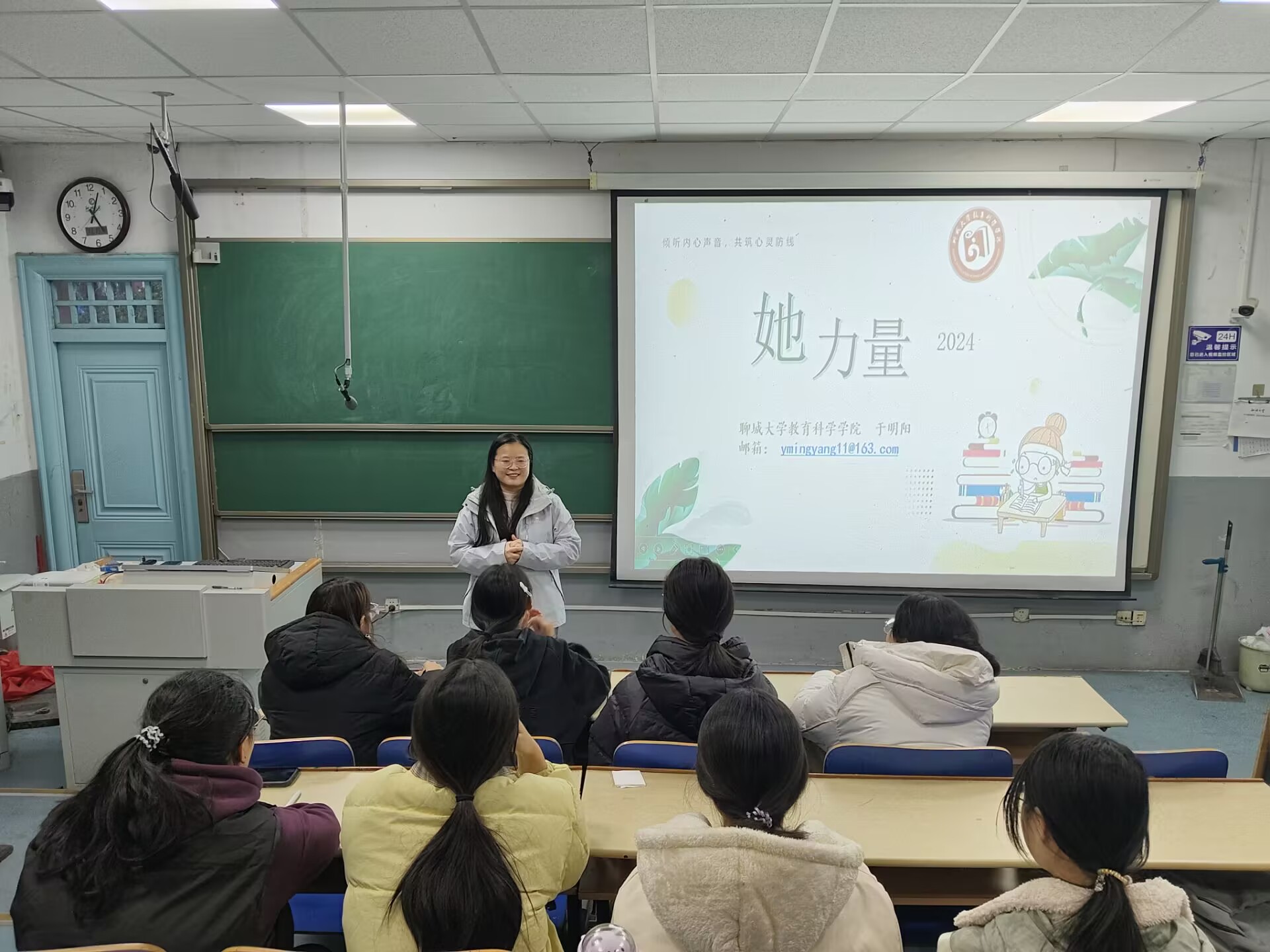本次活动邀请应用心理学专业教师于明阳担任主讲,她以《她力量:倾听内心声音 共筑心灵防线》为题,为同学们带来了一场精彩的讲座。本次讲座共分为“恋爱情感”“人际关系的适应”“学业压力的应付”“职业规划篇”四大部分,于明阳重点讲解了“恋爱情感”与“人际关系的适应”两个部分。针对第一部分,于明阳告诉同学们要慎重地开始和结束一段感情,在恋爱关系中要尊重自己和尊重他人,对两性关系保持充分的敬畏。第二部分中,于明阳从“亲情”“友情”“师生情”“个人与社会”四个角度分别向同学们讲解了如何处理好与父母的关系、如何对待同学之间的友情、如何与老师建立良好的师生情以及在社会上如何正确处理人际关系。讲解结束后,同学们纷纷表示此次活动让他们更加关注自己的内心世界,帮助他们认识到与他人建立良好关系的重要性。