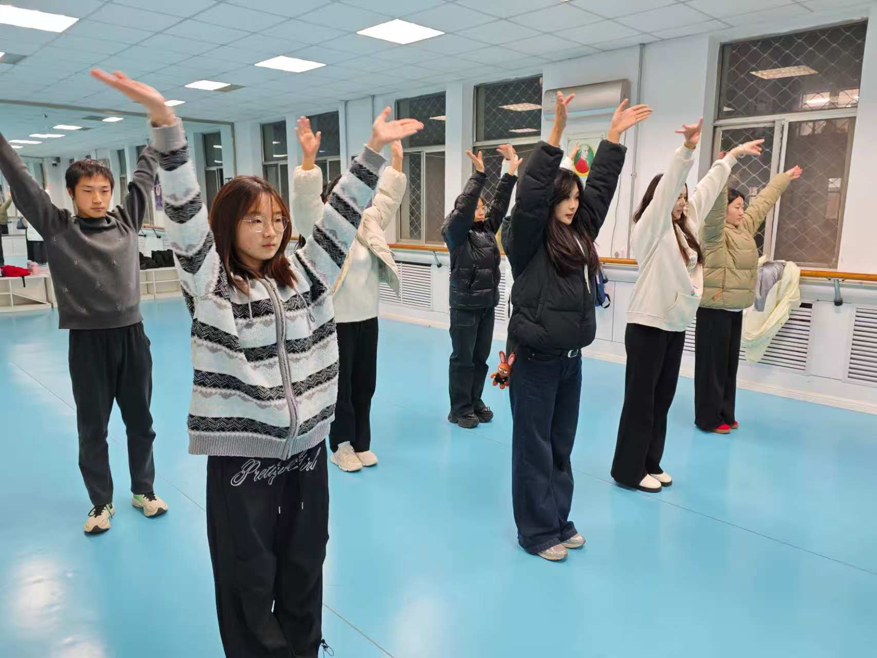 本次训练由学院舞蹈组负责组织与指导。训练从基础动作复习开始,领操员针对动作发力点、抬腿高度及落地缓冲等细节逐一进行纠正,帮助参训同学规范动作。在掌握基础动作后,训练进入进阶阶段。领操员首先进行了完整动作示范,清晰展示动作要领,随后对动作步骤进行拆解,从预备姿势、空中姿态到重心控制、落地技巧等方面展开细致讲解。同学们认真跟随练习,从原地分解动作开始,逐步结合上肢配合,最终在音乐节奏中连贯完成动作,循序渐进地提升技能。训练过程中,同学们积极投入、互相鼓励,现场气氛活跃融洽。活动不仅帮助大家感受到运动的乐趣,也在一定程度上提升了身体的协调性与节奏感。